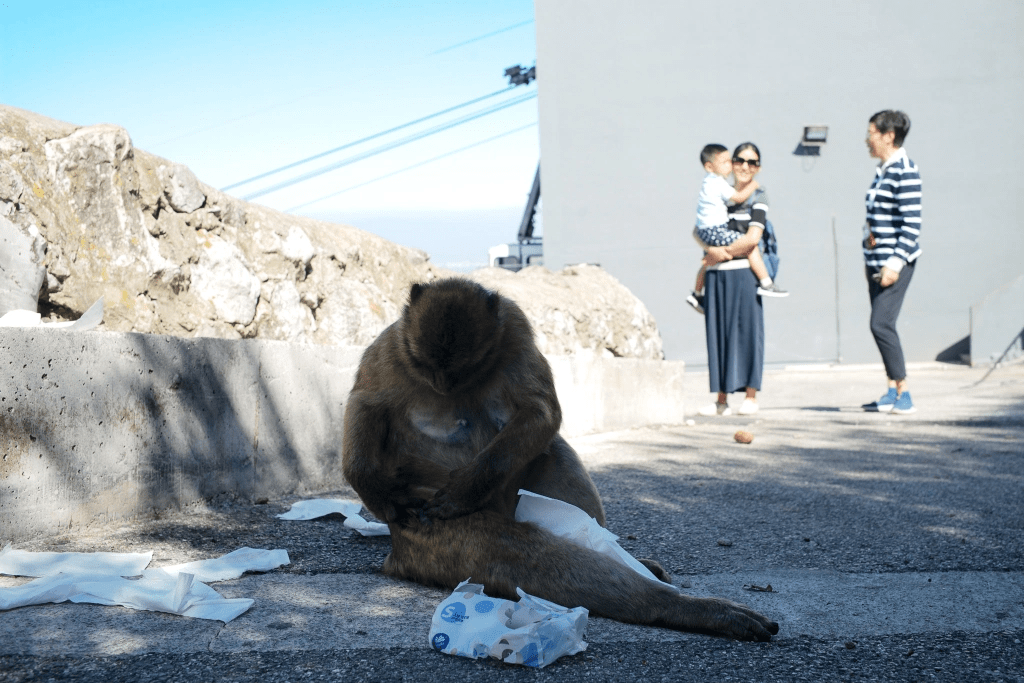 英国人从北非带来的猴子,如今在直布罗陀生活得很滋润。猴子们习惯了游客,逐渐变得胆大妄为。一不小心,竟然把妈妈背包中的餐巾纸抢走,吓得宝宝大哭一阵。