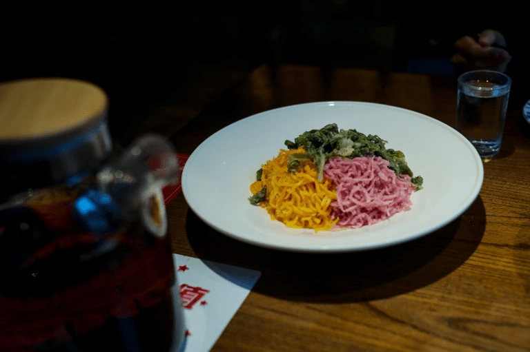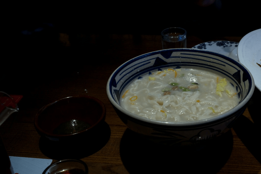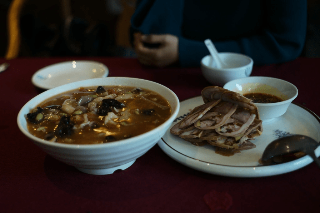 浆水面,用的是发酵的绿豆浆煮面条,号称有股老北京豆汁味。只可惜口味寡淡,加上些韭菜花才勉强找到些豆汁的感觉。也难怪,据说现在北京卖的豆汁也不必原来口味浓郁了。