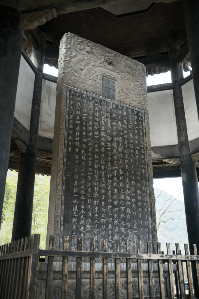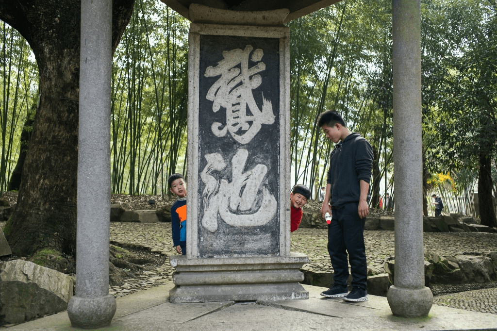 会稽之阴,当年王右军雅集之处,如今重修兰亭景观。茂竹修林,重植于滋。清流激湍,仿佛当时。景区置有鹅碑、墨池、修竹、曲水、右军祠堂。是日亦“天朗气清,惠风和畅”。而方圆数里间,清净无喧嚣。