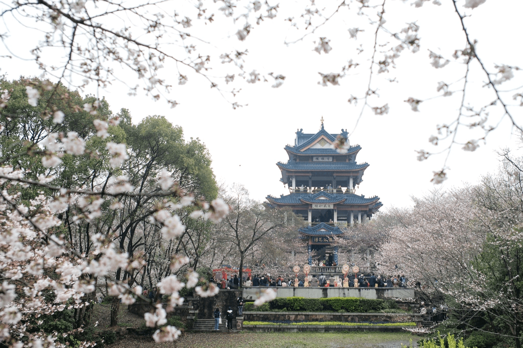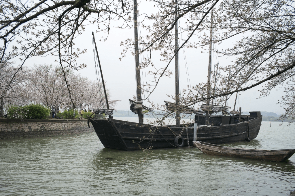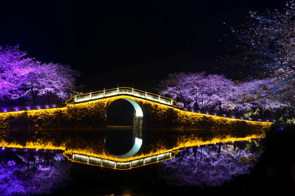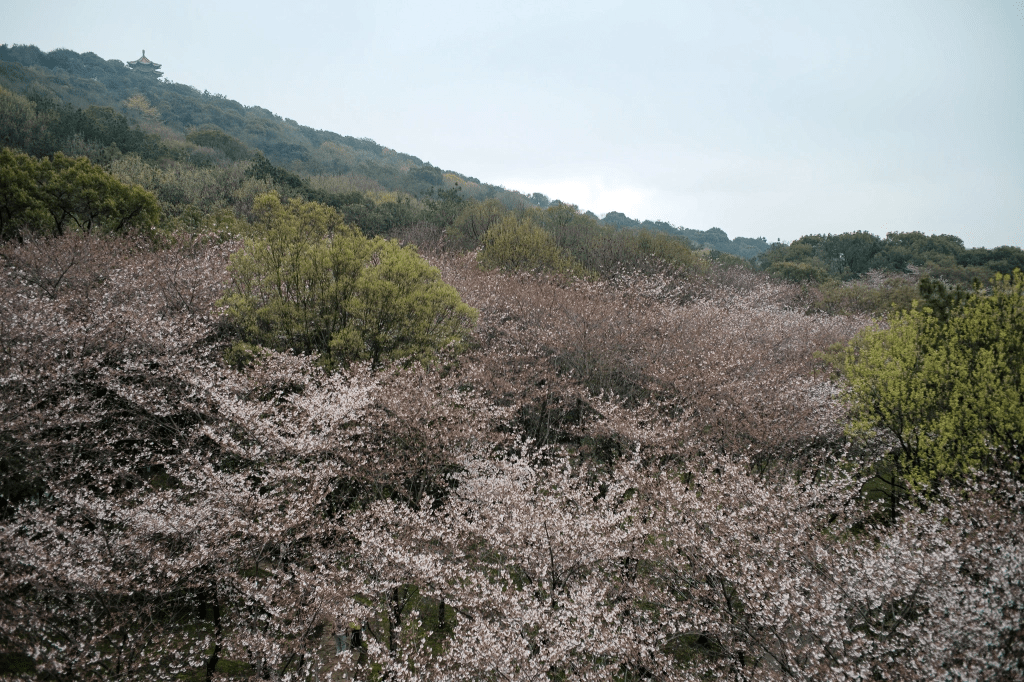 一直关注着鼋头渚樱绽时间,结果还是到早了。吉野樱只开了三四成,树枝上尚不绚烂,更缺少了落花铺地的情致。所幸,今年首开的夜间赏花颇为意外。
