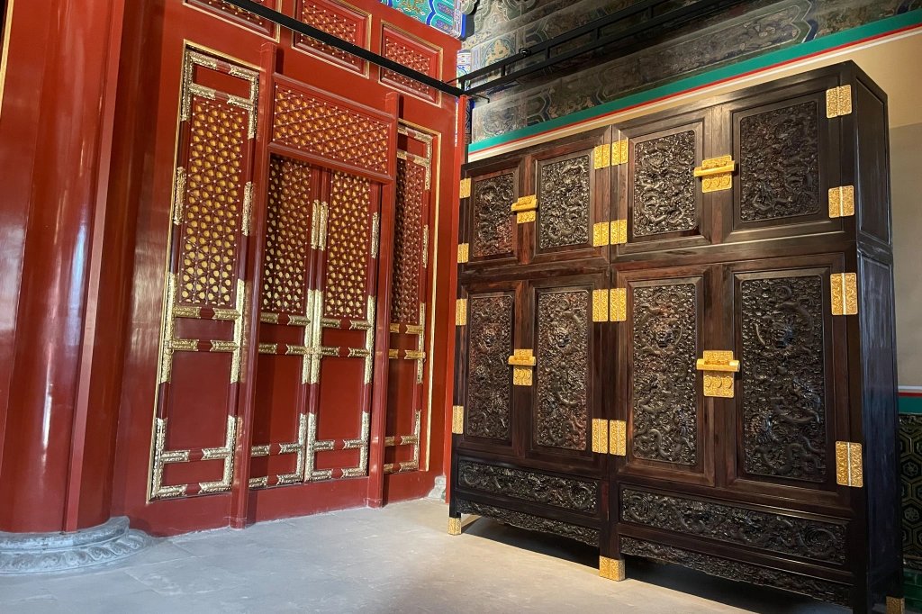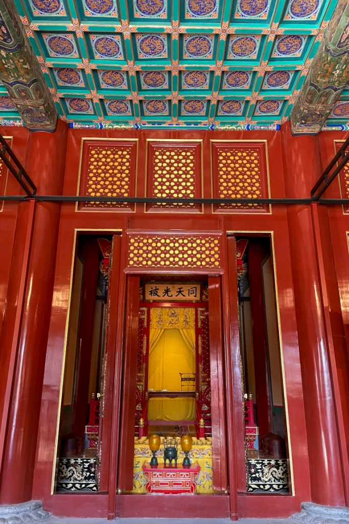 寿皇殿始建于明万历,重修于清乾隆,格局延至今日。在清代,作为皇家祖庙,陈设历代祖宗画像和印玺等遗物,此外亦作为皇帝停灵之所。此处清净无扰,正适合从故宫喧嚣和疲惫中放松恢复。而此处不仅现在清净,过去亦然 – 除了皇帝在按节令行祭以外,这里人迹罕至,故常用作囚禁宗室。其中以三人最著名: