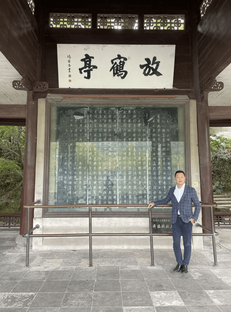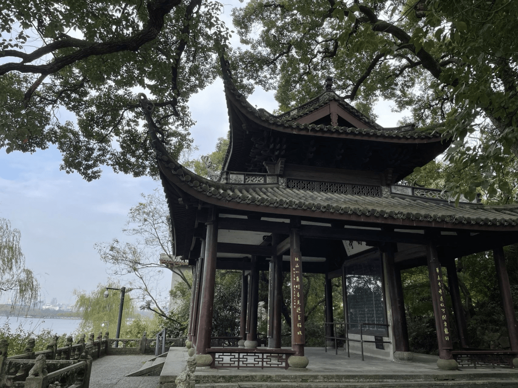 风景如诗,英灵络绎。岁月如梭,白马过隙。试想当年,水平云低,乐天勾留。纵鹤亭外,和靖归舟。醉倚白沙,东坡晴雨不避。油壁西陵,苏小同心相求。而无忘忧乐,及志在匡复者,又层出于辛亥之间矣。英士纵马,一木独支倾覆。鉴侠捉刀,热血化作碧涛。至于鹤卿西学,以倡日新。俊卿制石,以发遗珍。文武鼎盛,时世绝伦。更何况中山纪亭,主义光耀九旻。