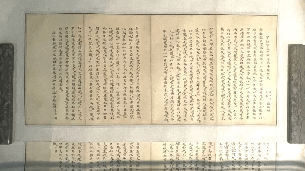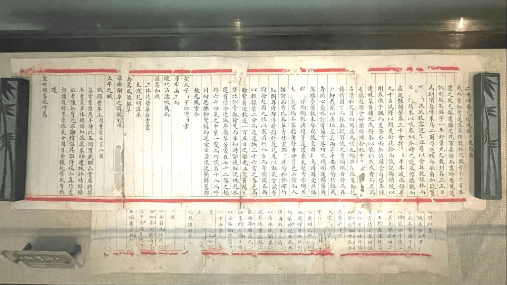 在新建的滕王阁殿基里,隐藏着一个杂七杂八的展览,名曰“圣旨博物”。其中展出清代圣旨实物四副,另有应试卷子若干,末代皇帝两任帝师的生平介绍和字画,各种匾额,以及清代各种政府文书的复制品,真是杂乱得可以。