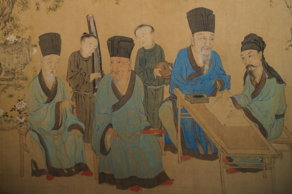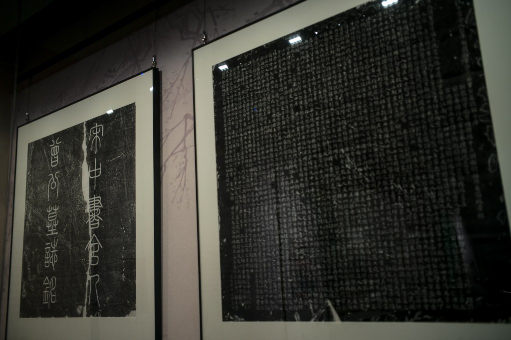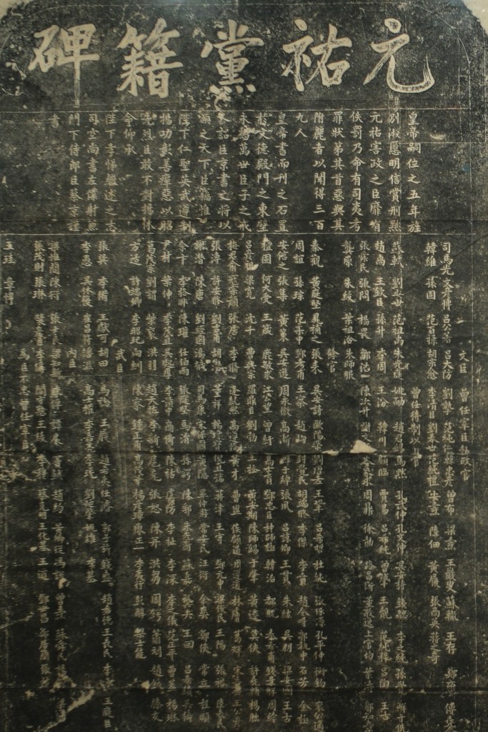 唯有明人所绘《耆英盛会》,似能令荆公感到一丝快意。当时正值熙宁,图中富弼、文彦博、司马光等旧党人物一一被荆公排挤出朝堂,不得不在洛阳龙门赋闲高会。另外展品《元祐党籍碑》拓,乃出自新党门徒、婿弟蔡京手笔。