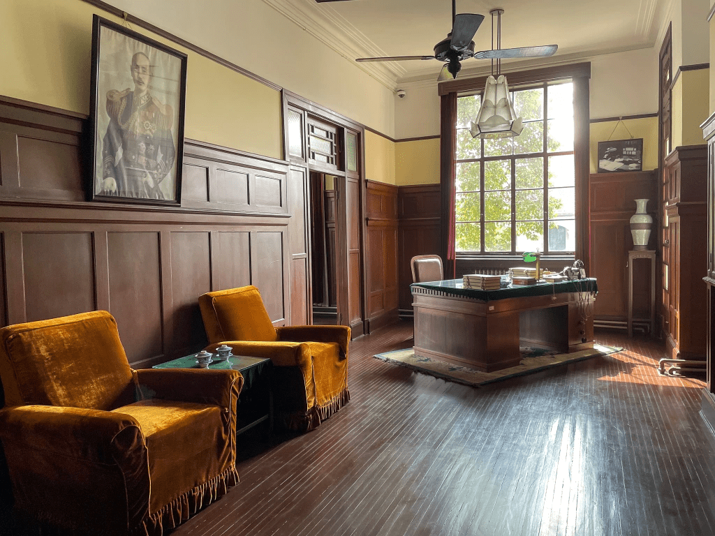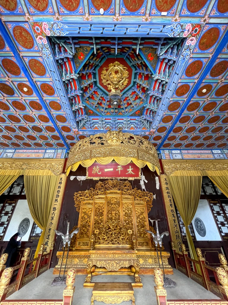 如今的总统府,主体部分仍是清末两江总督府的格局:面南背北,两侧为园林池澥。国府期间新增建筑多在北侧,自西向东依次为临时政府官邸、总统府大楼,以及行政院。院落中还复建了太平天国天王府布景,可惜既显局促,又似觉突兀。