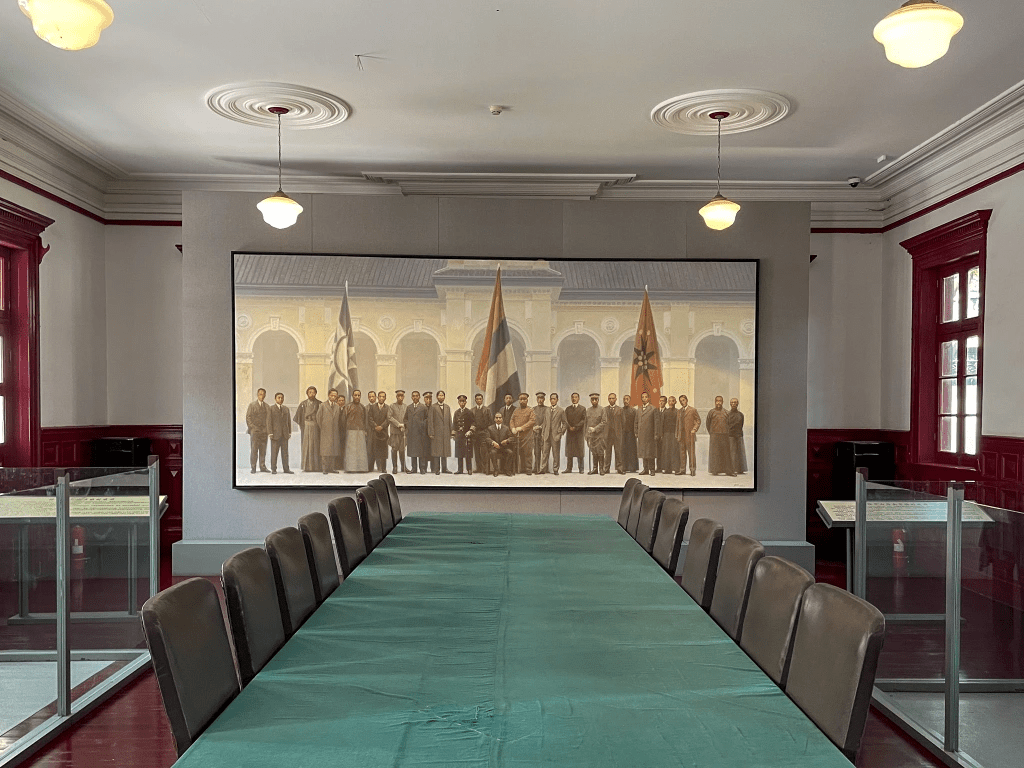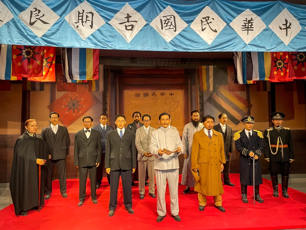中山先生临时大总统府邸内,仿照中华民国临时政府成立典礼诸公设立蜡像场景。同时播放《马赛曲》背景音乐。遥望彼时英烈,叹息当下之斗屑,怎不令人动容!
