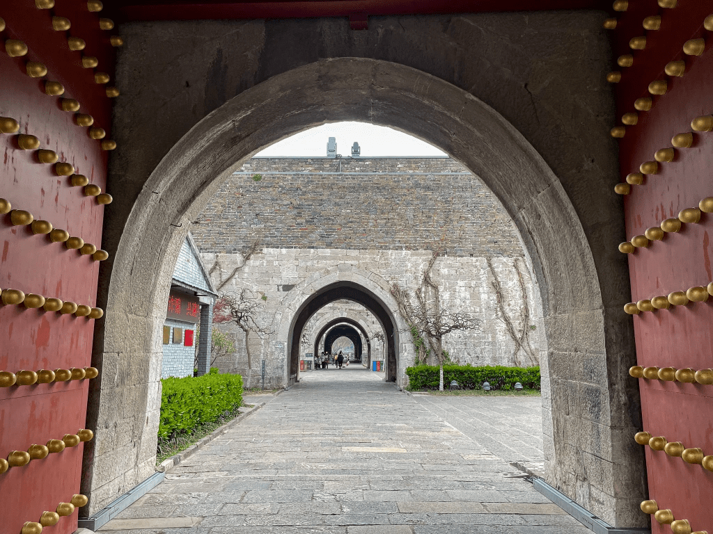 南京中华门,原名聚宝门,是明代首都城墙上的一座城门兼堡垒,代表中国古代防御建筑的最高水准。城门位于明代城墙的正南面,相当于北京的永定门或正阳门的位置。中华门采用罕见的多道内翁城结构,共有四道券门,分割出三层瓮城,其中能容纳三千奇兵。更为奇特的是翁城方向朝里,从外部看没有突出,据说是为了迷惑敌军诱其进入翁城的陷进之中。以上据说都是军事建筑的奇思妙想,可惜未见史载实战。仔细想来,这个设计恐怕禁不起推敲。