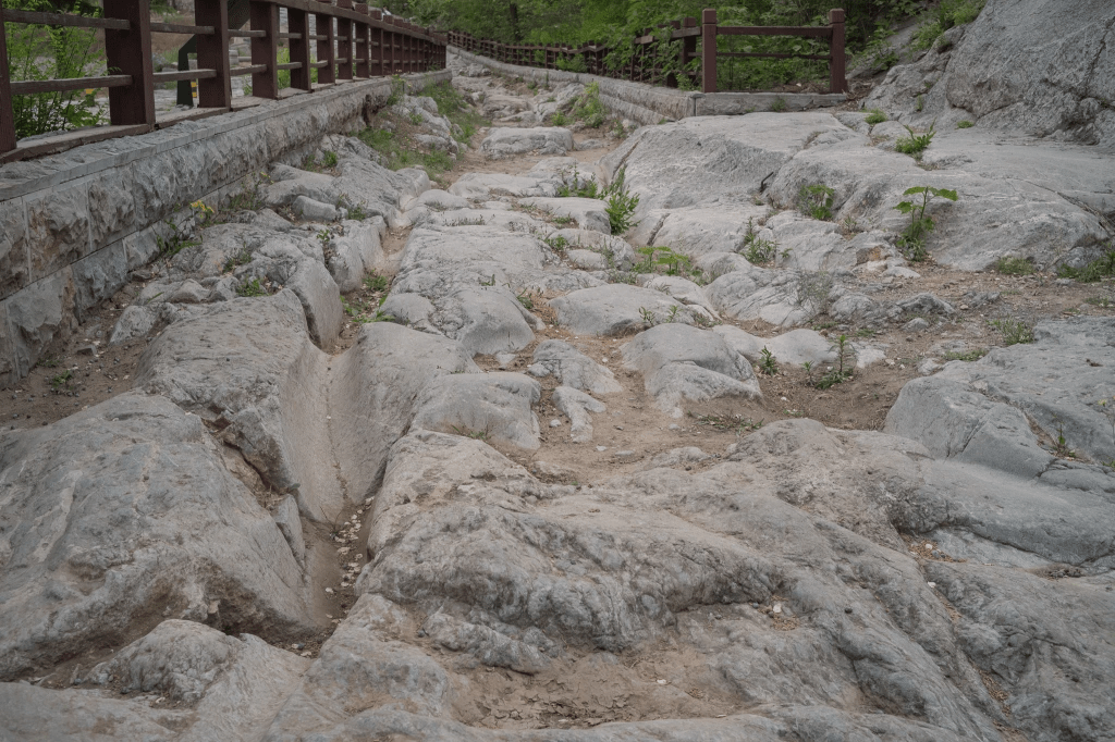 沿途第二关是白石关,也就是通常所称的井陉口,如今被称为秦皇驿道景区。沿途有驿道车辙痕迹、白石关口和庚子长城可以参观。登山长城顶点,便能一眺古战场全貌。在周围一番探查下来,终于证得此战情形。