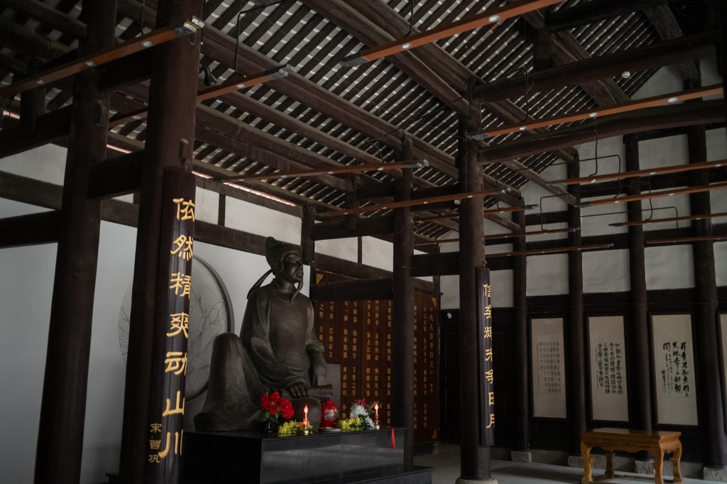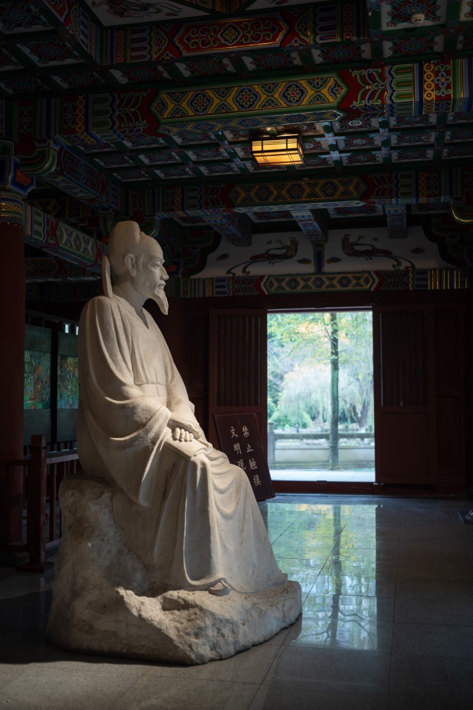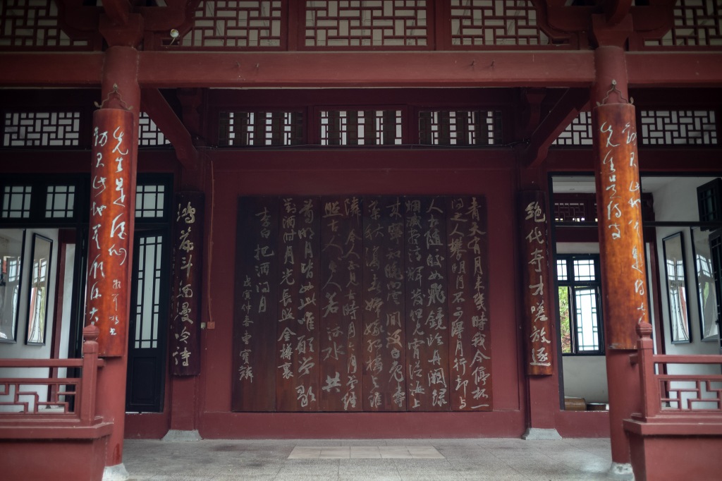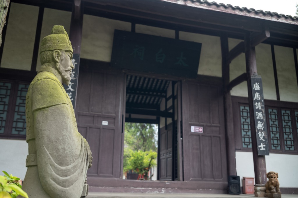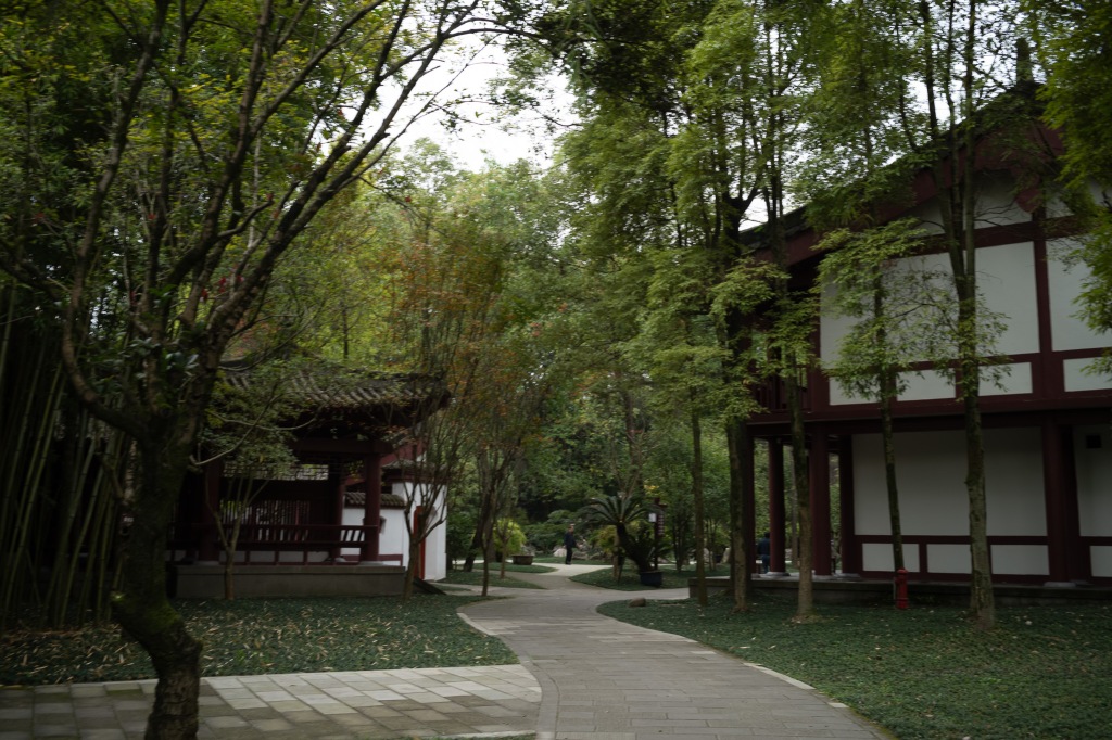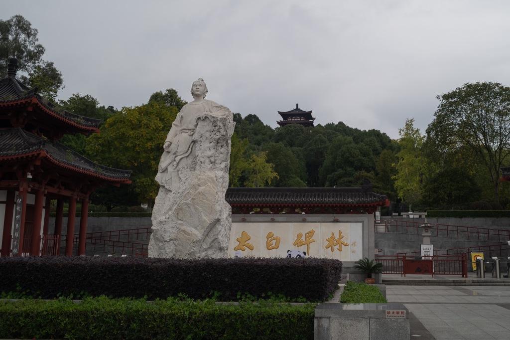 太白故里,在如今的绵阳市青莲镇。太白祠堂传建于故居原址,自唐以来存续不断,屡毁屡修。如今格制沿袭自清代,而近年来又在外围增添景致。祠堂外树众多复刻碑铭,其中含清人李调元的《太白故里考》。观其大略,一辩太白出生地在蜀不在陇,二辩匡山读书处所在。太白祠幽静安逸,隔绝喧嚣。而临近傍山新修的太白景区,则汇聚了附近村里人气。登山顶太白楼,俯瞰涪水,极目北望处正是“匡山读书处”所在。于是临时起兴,匆匆赶往。