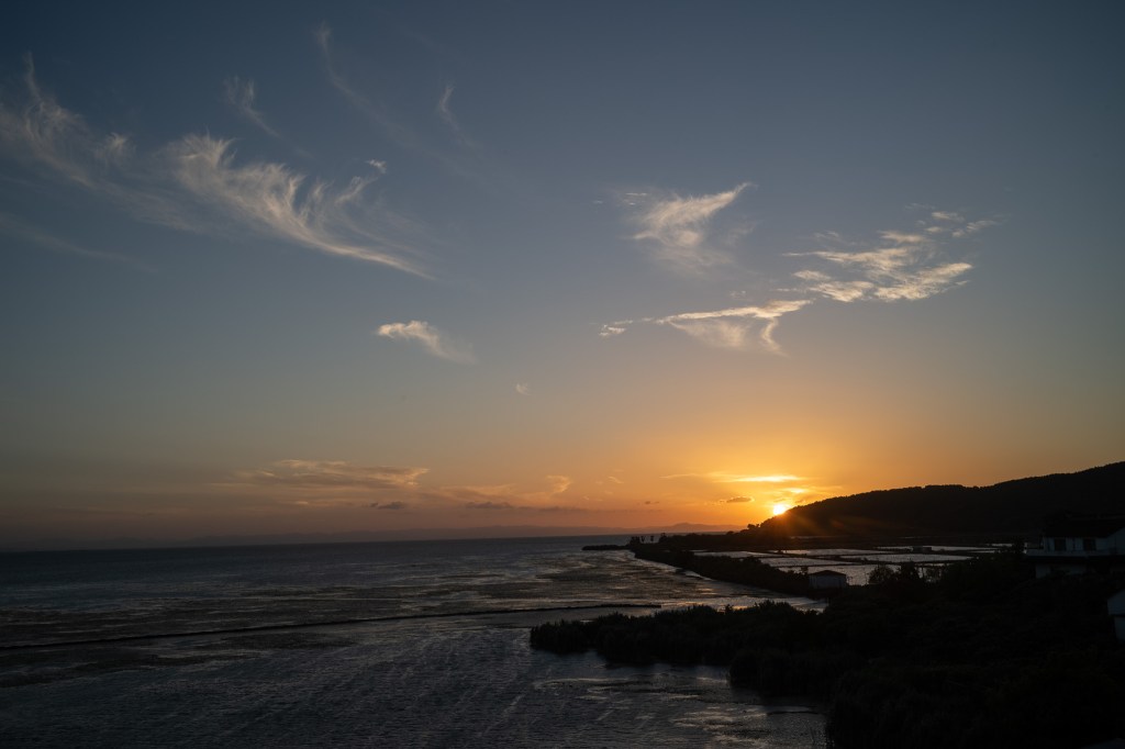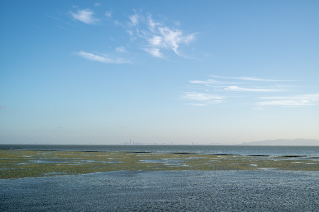 初升晓雾烟澹澹,欲坠斜阳影粼粼。