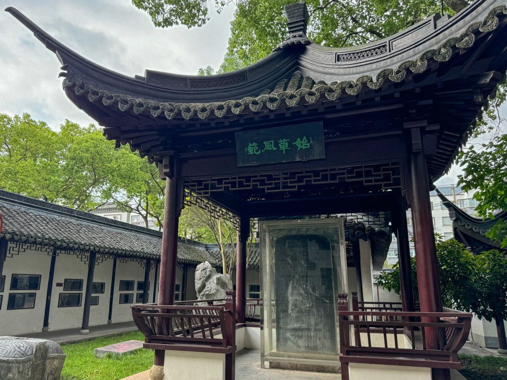 余推测博物馆原址为县学文庙。而与之毗邻则是方塔园。此处在宋为兴圣教寺,其规制据遗存石础推测当在杭州灵隐寺之上。明代在原址建城隍庙,直至抗战时期毁于战火。如今所存之塔为宋塔修复,塔前有巨幅明代砖画。园中有朱舜水先生纪念馆、陈公堂(未寻得、似应为卧子之指)、香光画廊(园方名之其昌画廊,有碍斯文,故余改称之)。此处余童稚时曾随小学春秋游造次,如今三十余载,竟然不存任何印象。念及园中新修景致,其树植多半为此后所栽,如今不乏合爆者,正所谓树犹如此,人何以堪。