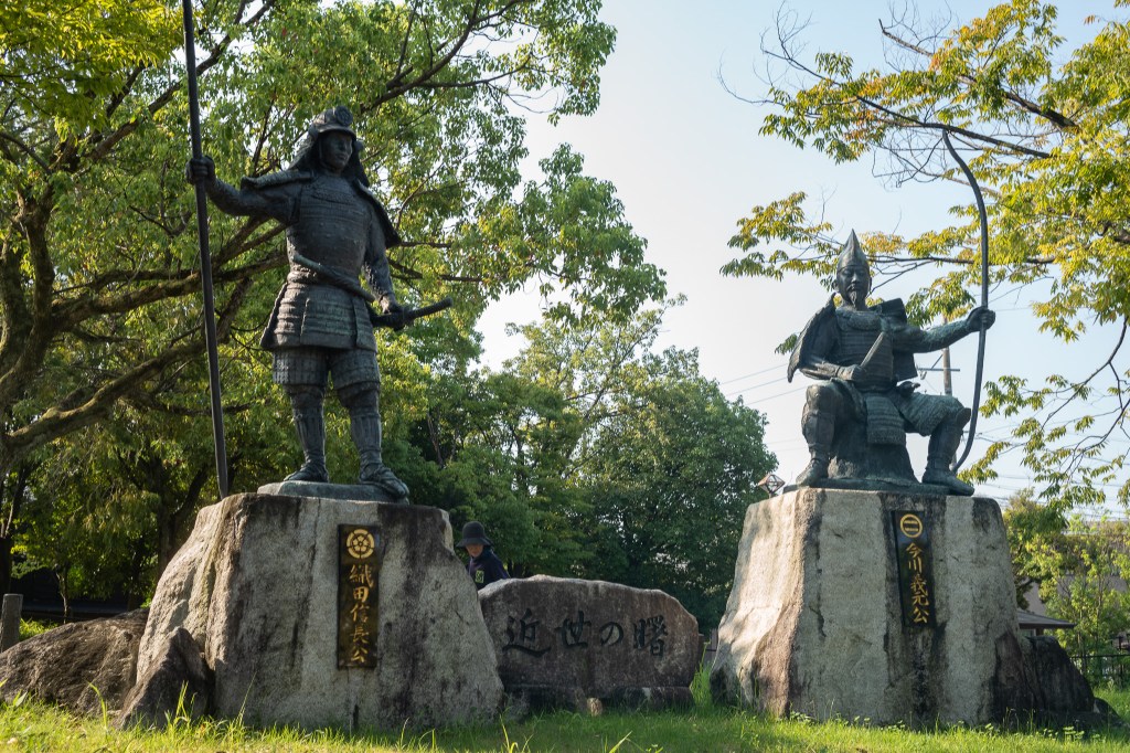 攻取美浓之后,信长公着手上洛,以挟天子令诸侯。诸侯震怖,先后组织三次包围网,却为信长公逐一瓦解。位于彦根市的佐和山城,原为近江国支城。信长公得之以后几经易封,最后为石田三成所有(时称石田有两件宝物:佐和山城与岛左近)。石田败亡后,德川重臣井伊直政获封此处,并着手毁城另建。新城便是“国宝”彦根城。相较之下,佐和山城背靠群山,似更利于守卫;而彦根城地孤耸平原之中,却得尽览琵琶湖景致。