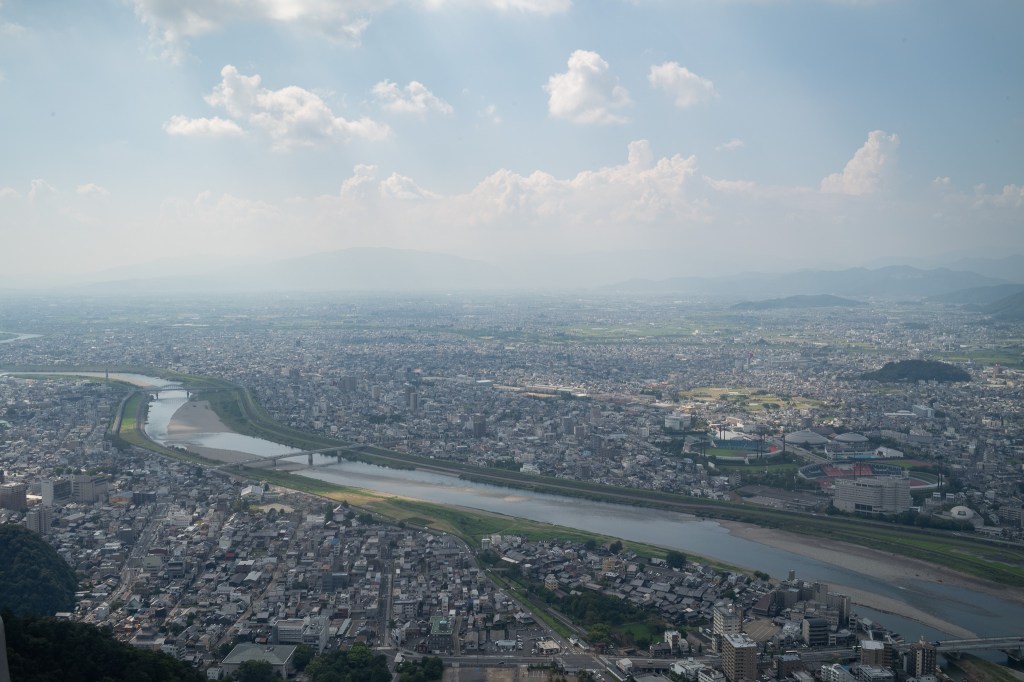 尾张国地势低平,至美浓国始有高山。有一天守阁立于百丈高峰,登之向南可俯瞰长良川两岸平原,乃至尾张。此处原为美浓斎藤家之稻叶山城,信长公改其名“岐阜”,取周文王之岐山与孔子之曲阜之合意,盖始有成为“天下人”之意。天守虽高,居所实则位于山脚,如今基址尚存。