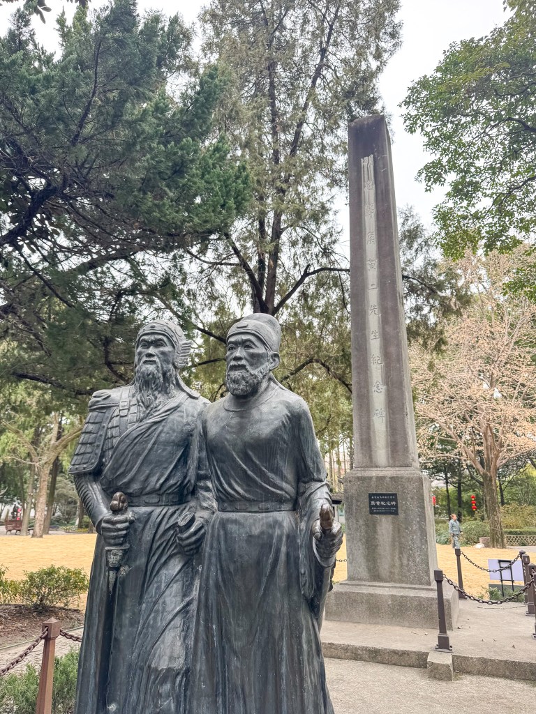 元末名士、书家杨维桢曾避乱松嘉,并题书《修学》、《修庙》(学指学宫,庙指孔庙)两碑于此。今《修庙》碑在网络有拓片可寻,为楷书。《修学》碑不见于网络,其残片则似葺入学宫侧墙,为隶书,而未辨是否复刻。此外赵孟頫曾留《国圆通》碑于此,惜今仅存拓片。