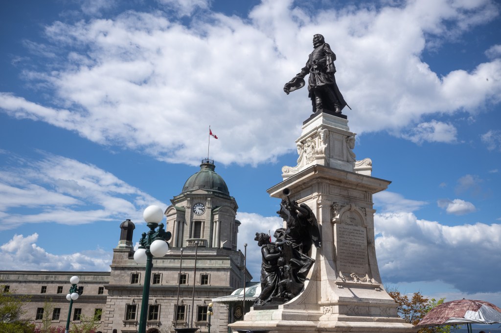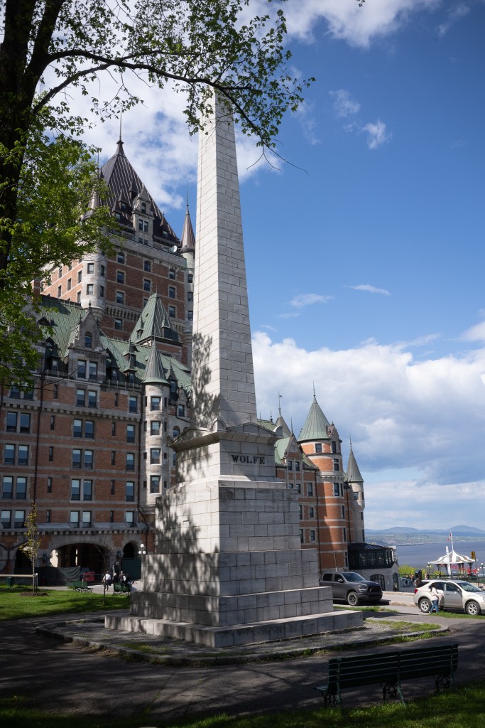 而英、法文化交相辉映于魁省,令人目眩。维多利亚女王、沃尔夫将军、纳尔逊等抗法英雄的雕像、赫赫宣扬大英主权。同一处,法国探险家中之翘楚、首位长驱内陆的航海家雅克·卡蒂埃、魁市创建者塞缪尔·尚普兰、以及蒙特利尔奠基人迈松纳夫、甚至沃尔夫的手下败将蒙卡尔姆将军、也岿然屹立。美国独立战争时期,曾经策动魁北克联合抗英 – 当时法军正在和大陆军并肩而战,魁北克人却拒绝呼应。另一方面,魁北克人对保家卫国兴趣乏然,以至于英国不得不从国内调来不对防御要地。