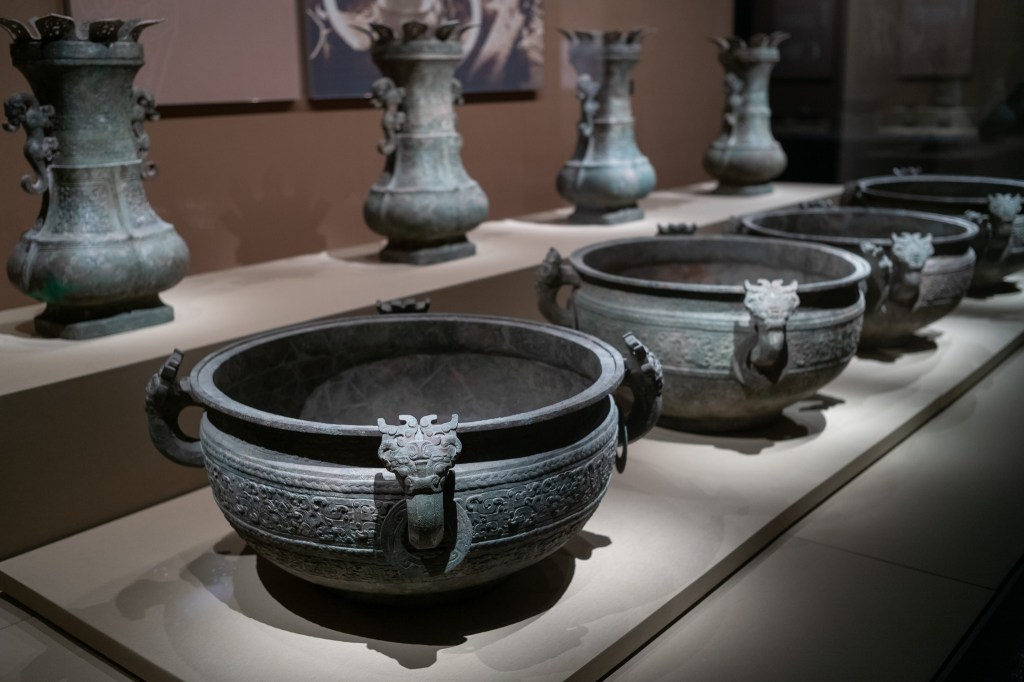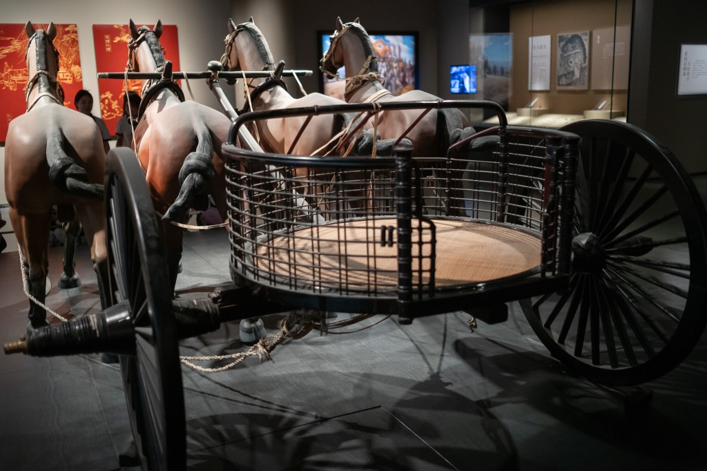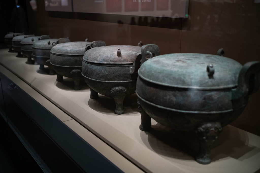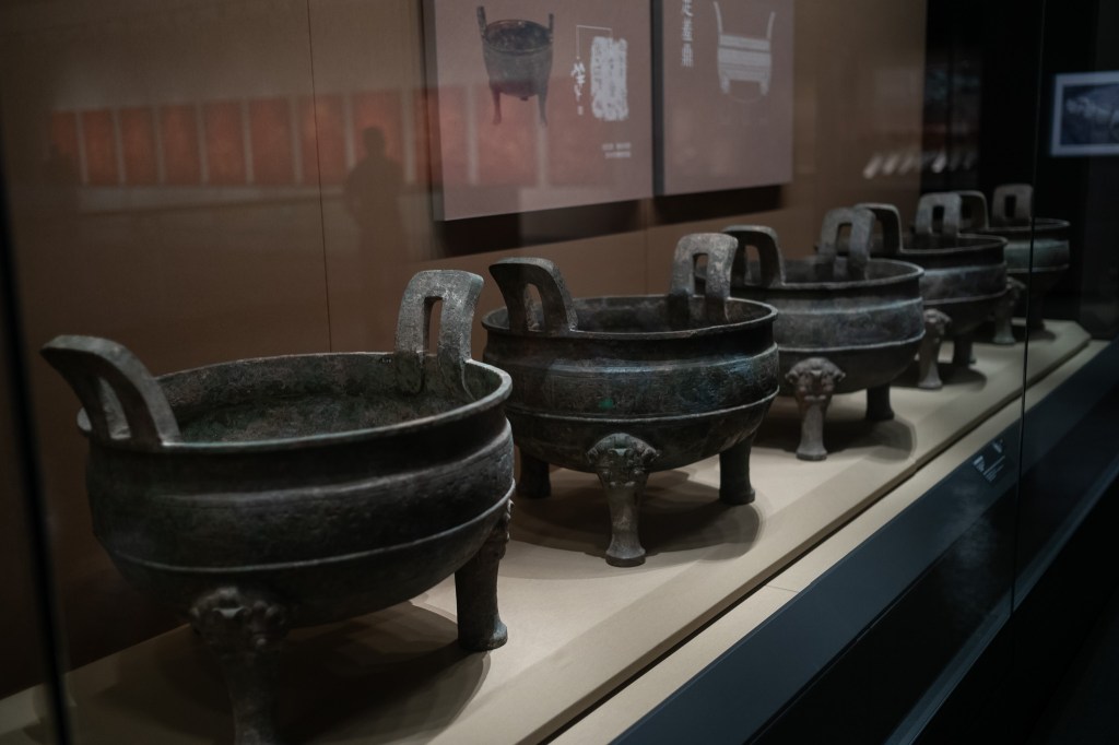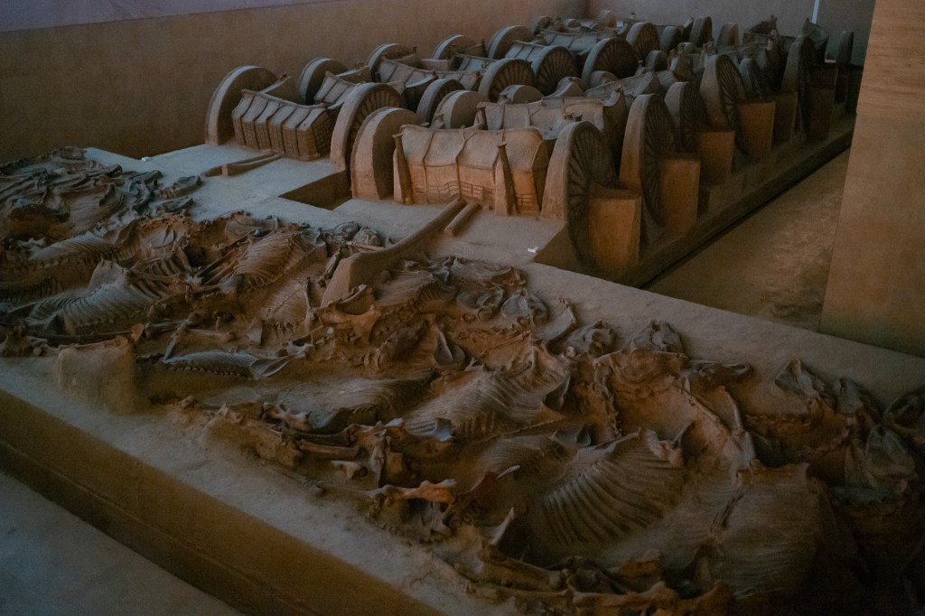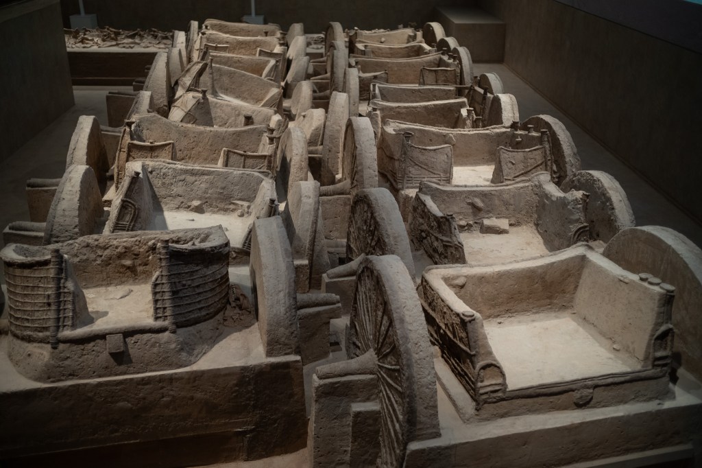 太原金村赵卿墓,墓主通常被认为是赵简子鞅。如今其随葬器皿与车马坑分别在山西省博和太原博物馆展示。赵卿墓采用七鼎的诸侯礼制,有车十七辆,其中含一台罕见圆舆车,此外有重冠春秋的“镬鼎”、以及一众精美器物。