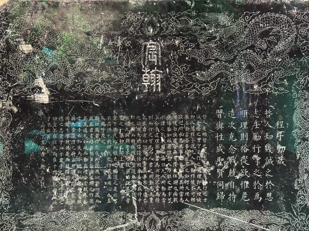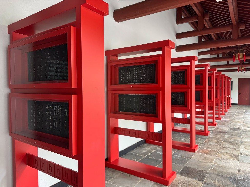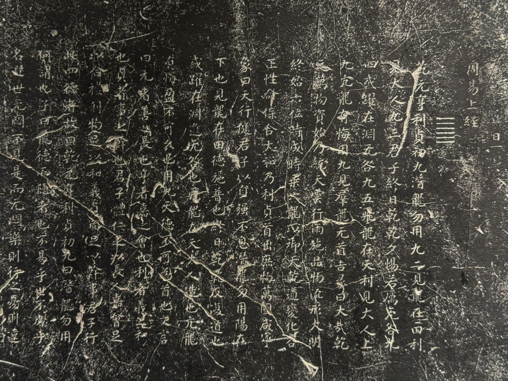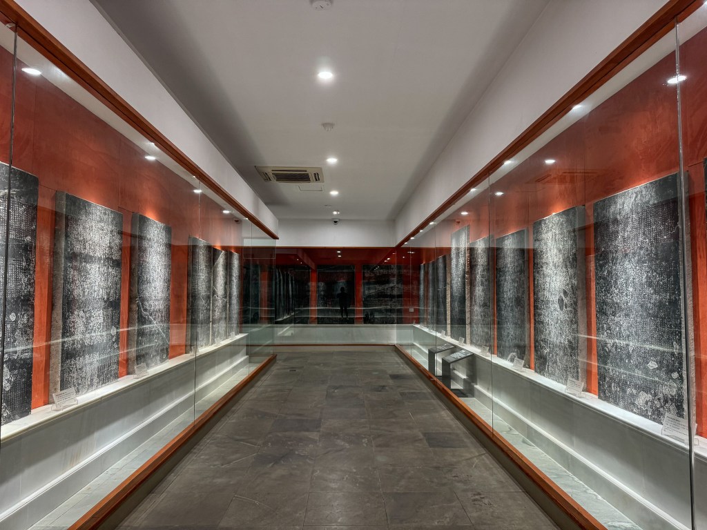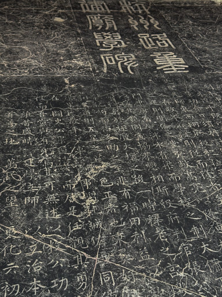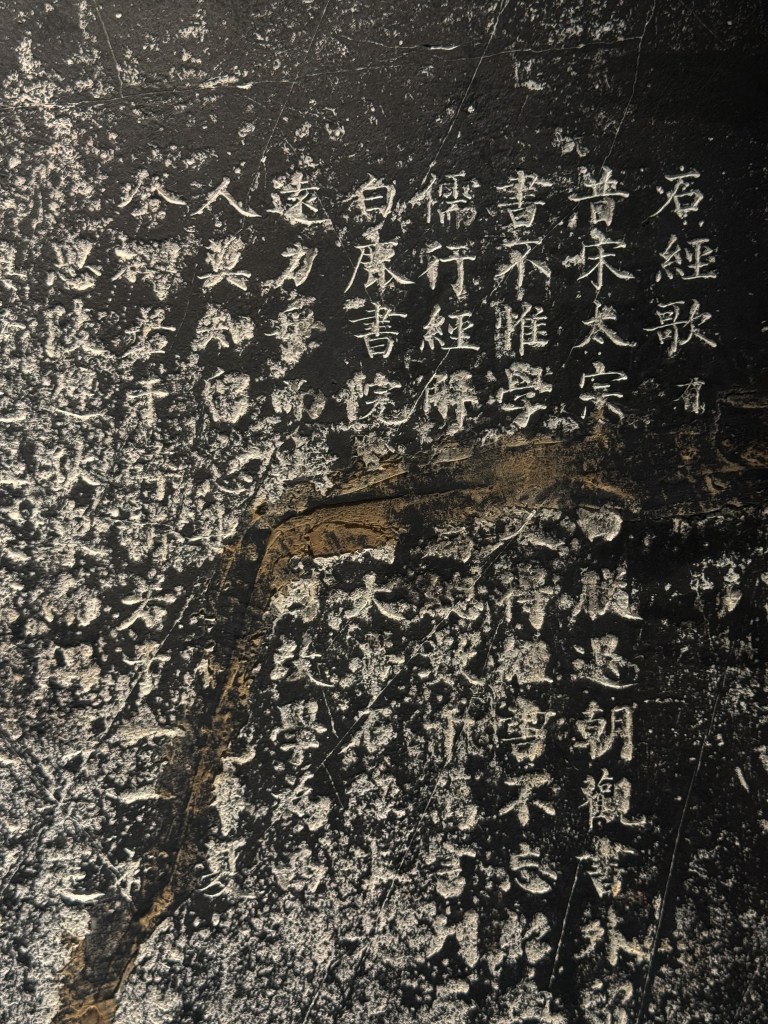 太学石经,以后汉蔡中郎主持镌刻的熹平石经为始,也最为著名。刊立之时,“车乘日千余两,填塞街陌”,而如今只剩百余残片,散布各处。此后历朝多有效仿,其中南宋石经历经劫难,如今幸存大半,静列于杭州文庙碑林中。虽值暑假,西湖边人流攒动,而一墙隔外却门厅罗雀。一人一室,八十余碑,周文演易、孔孟论道、左丘明作史,唯我一人独享矣。