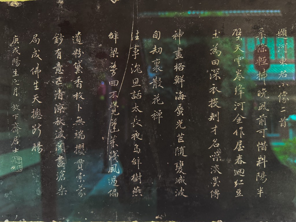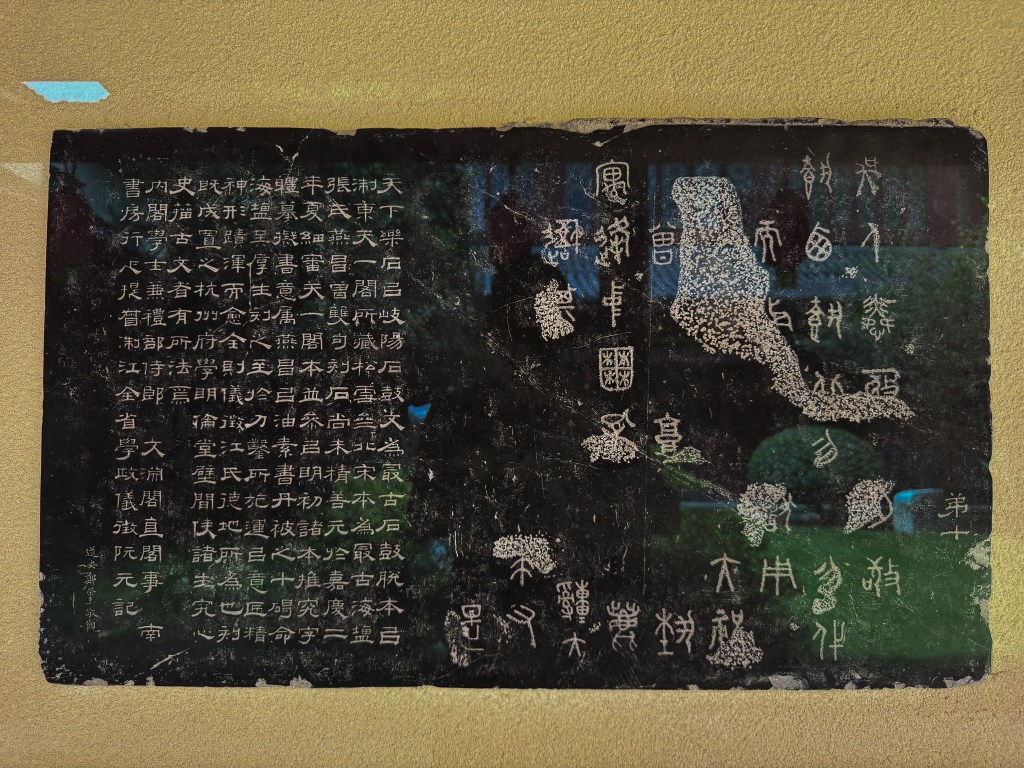 此外还有二王以来诸多名人法书、吴道子、李公麟作圣人师徒画像、五代星象图、石鼓文、以及历代兴、修府庙残碑、等等。如果单独置于别处,都值细细品读。以后再来杭州,此处恐怕是要必至了。