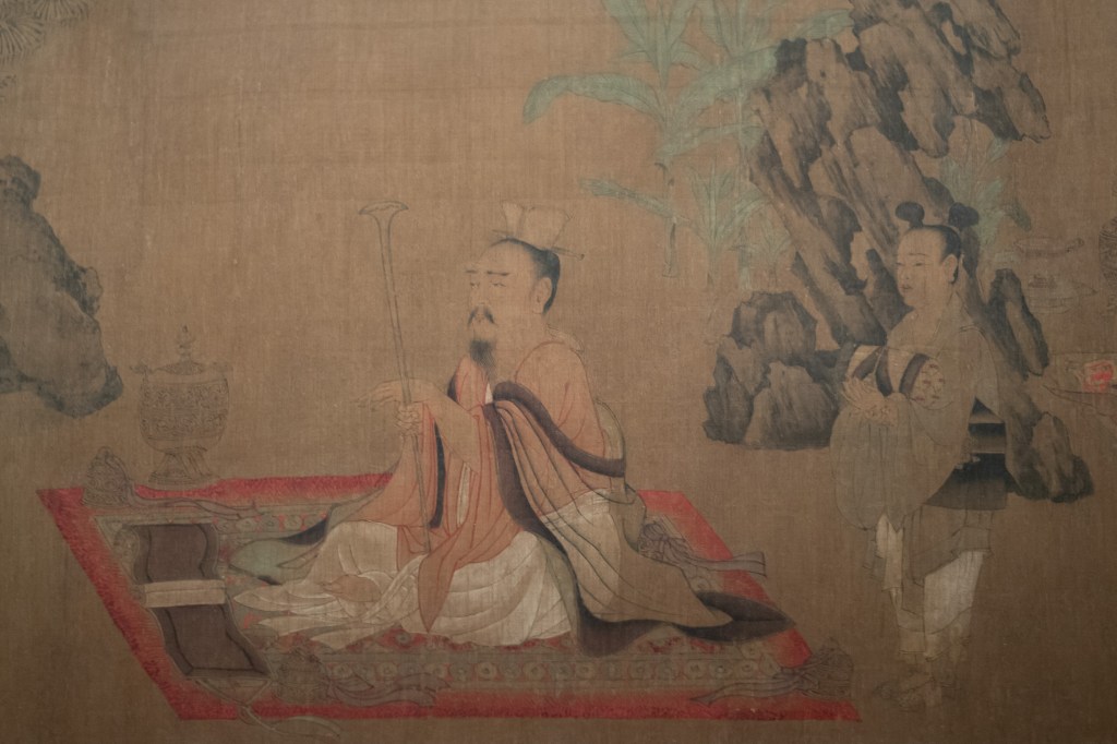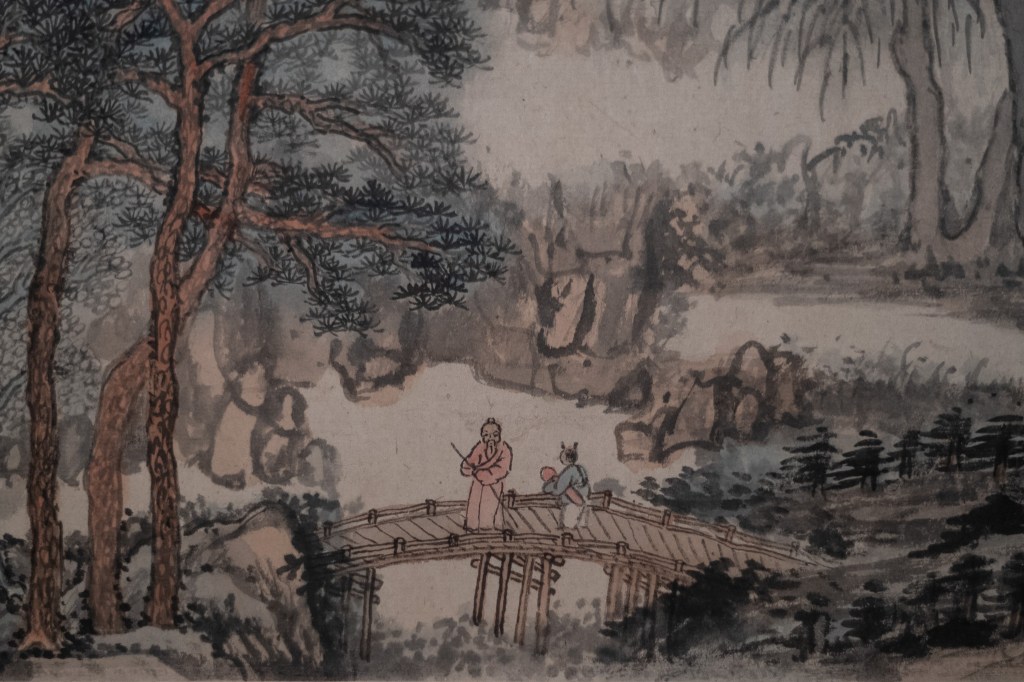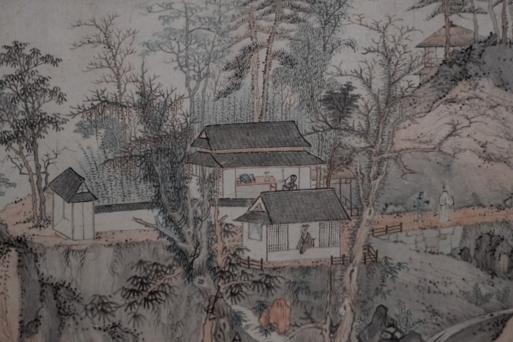 明代周臣《山斋客至》图轴。周臣为唐寅所师