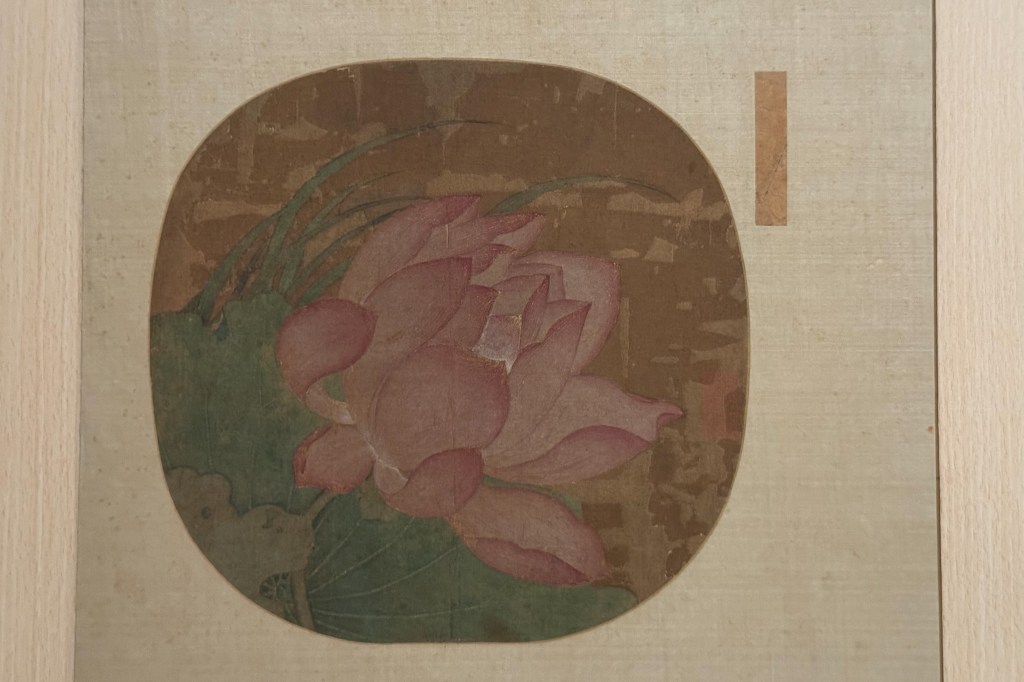 画中叶脉以金笔勾勒,故又称《金荷图》。花、叶皆随风势,和团扇用途贴切。