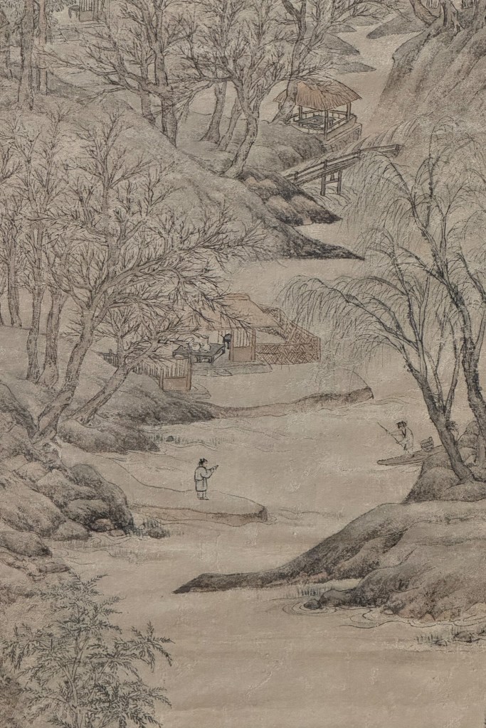 所谓“小辋川”,当是常熟赵园与曾园,明万历年间曾为御史钱岱别业。此画虽名为仿巨然,用笔更简,