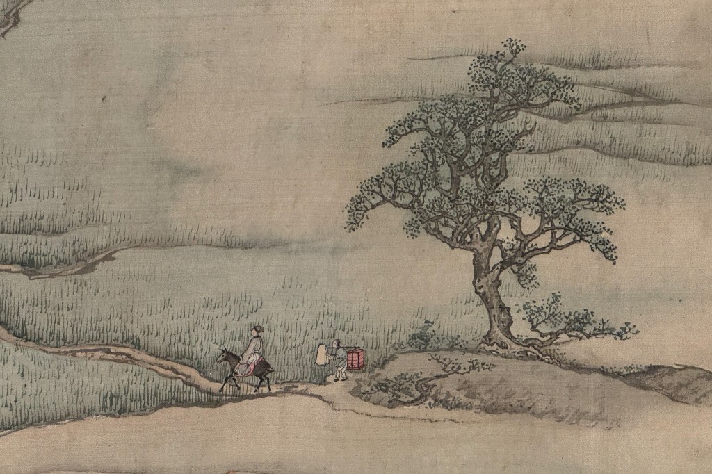 赵孟頫通过提倡“简省”显著降低了文人作画的门槛,同时又引入“禅意”增添了文人画的意境。此卷以简笔勾勒,青绿设色。《千里江山》一路的大青绿画过于雍容富贵,宋后逐渐不兴。赵孟頫采用的“小青绿”(赵亦为首创人之一),更为典雅古朴。