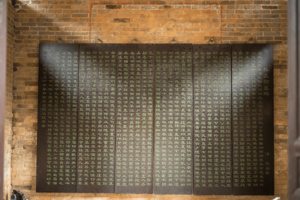 根据新旧唐书记载,公因啖耒阳聂令所致牛酒,一夕而没于耒阳舟中,如今有衣冠冢存。而岳阳平江县小田村则为工部暂庴墓,有祠堂。墓、祠均为清末湘军僚属李元度、张岳龄所修葺,因处偏远,至今未遭破坏。拜读李、张二君考察工部形迹,确定是之文,深感动容。更见墙上有授拾遗告身,以及工部遗像,更觉潸然。公曰:“百年歌自苦,不见未知音”。李、张二君,实为公异代之知音也。而百五十年后,吾亦为公之一知音也。