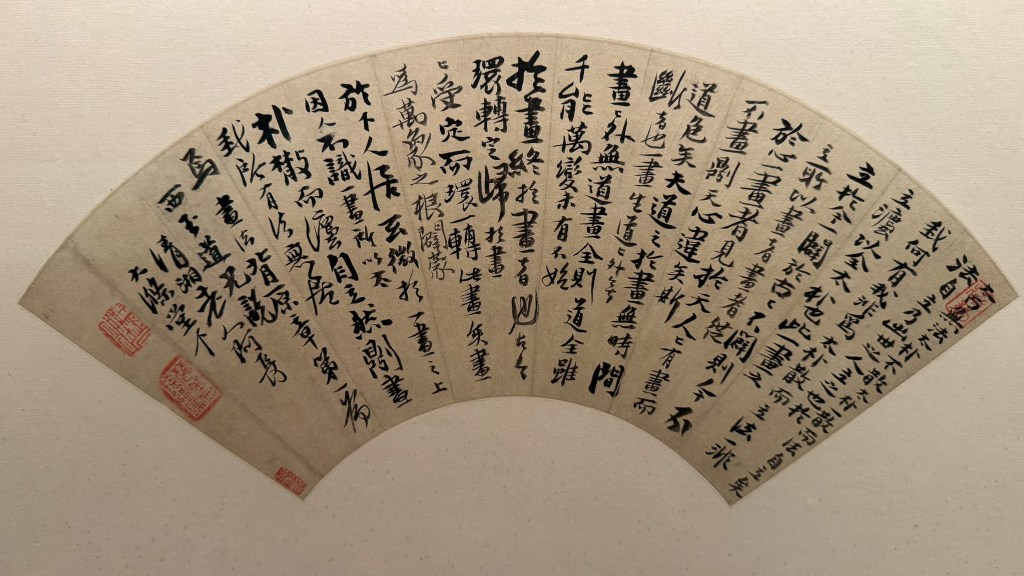 上博举办“尽扇尽美”特展,集明代以来 书、画名人作品,凡吴门、浙江、松江、四僧、之大家几无缺席,蔚为大观。
