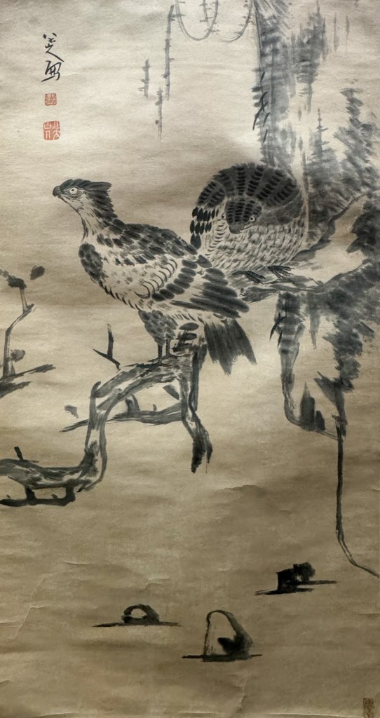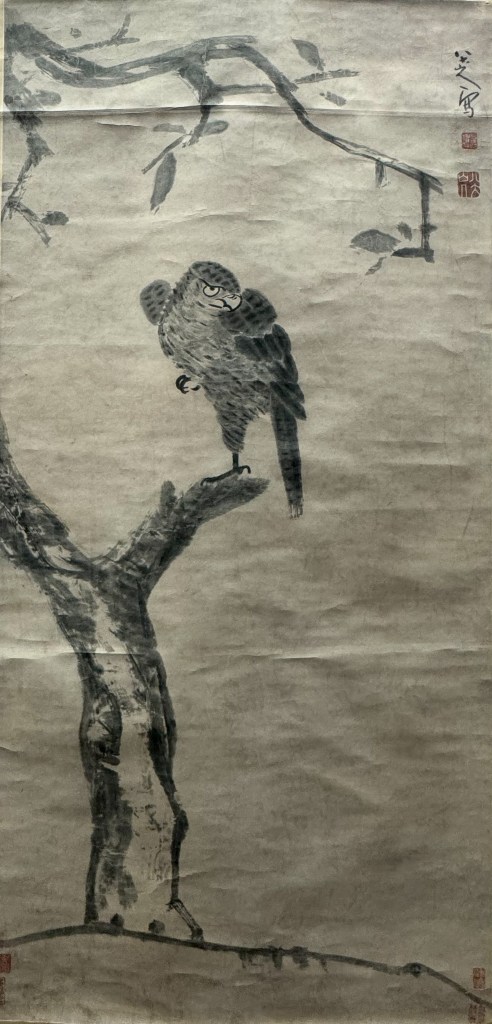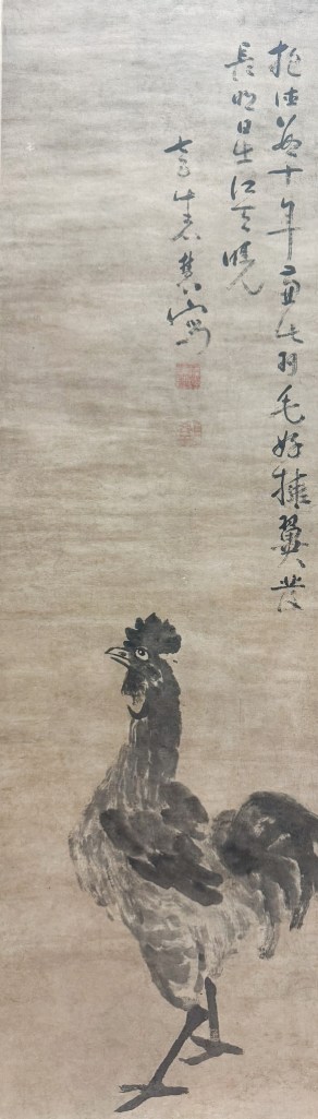 八大山人,本名朱统劝(音译,本字上林下金),别名朱耷,法名传綮(音庆),字刃庵,号八大山人、此外亦号彭祖、雪个、个山、个山驴、驴屋、人屋等等。明太祖九世孙,其父为辅国中尉,擅书画。少年中诸生,十八岁明亡,隐居山林;二十岁丧父,二十二岁丧妻,从此剃发为僧,三十六岁任道观住持,后常居南昌,时而云游,寿终七十九岁。