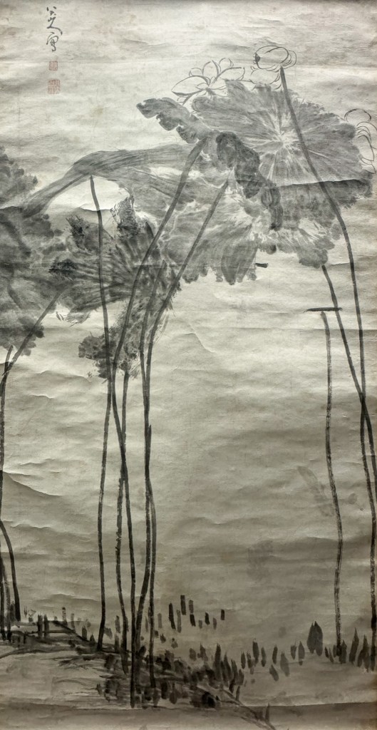 八大山人所画鱼、鸟,多露白眼,其意不言而喻。此外其题诗中多含亡国隐喻。其有自题诗云:“墨点无多泪点多,山河仍是旧山河。横流乱世杈椰树,留得文林细揣摹”。“墨点无多泪点多”一句心境自述以外,亦道出其简笔作画风格。至于书法,八大山人则将画字发挥极限。其临摹《兰亭》的笔意,和荷花茎秆如出一辙。